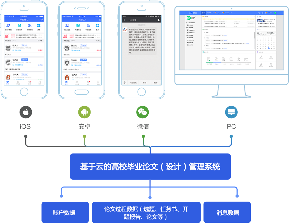 论文写作系统帮助学生和导师 节约大量调整论文格式的时间, 移动端APP可随时随地进行论文指导和评阅。